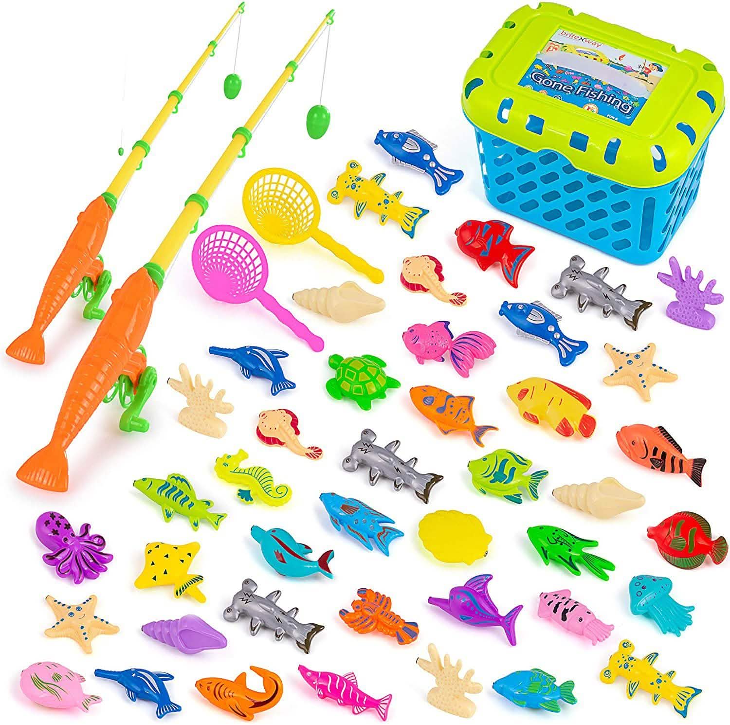 - It makes the perfect present for boys and girls on every occasion including Christmas, New Years, Birthdays, Thanksgiving and any other occasion you have in mind Magnetic Fishing Game 47 pcs, Fish Toy Set with Poles and Reels, Catching Nets, Floating Fishes for, Kids Toys for Table, Bathtub, Pool, Floor