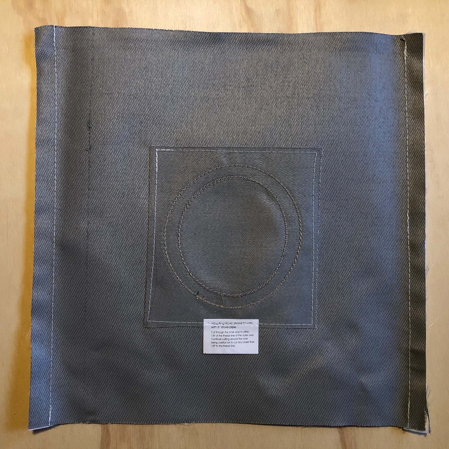 Stove jack is not cutout, but does feature stitched-in patterns at 5" & 6" that you can cut out.