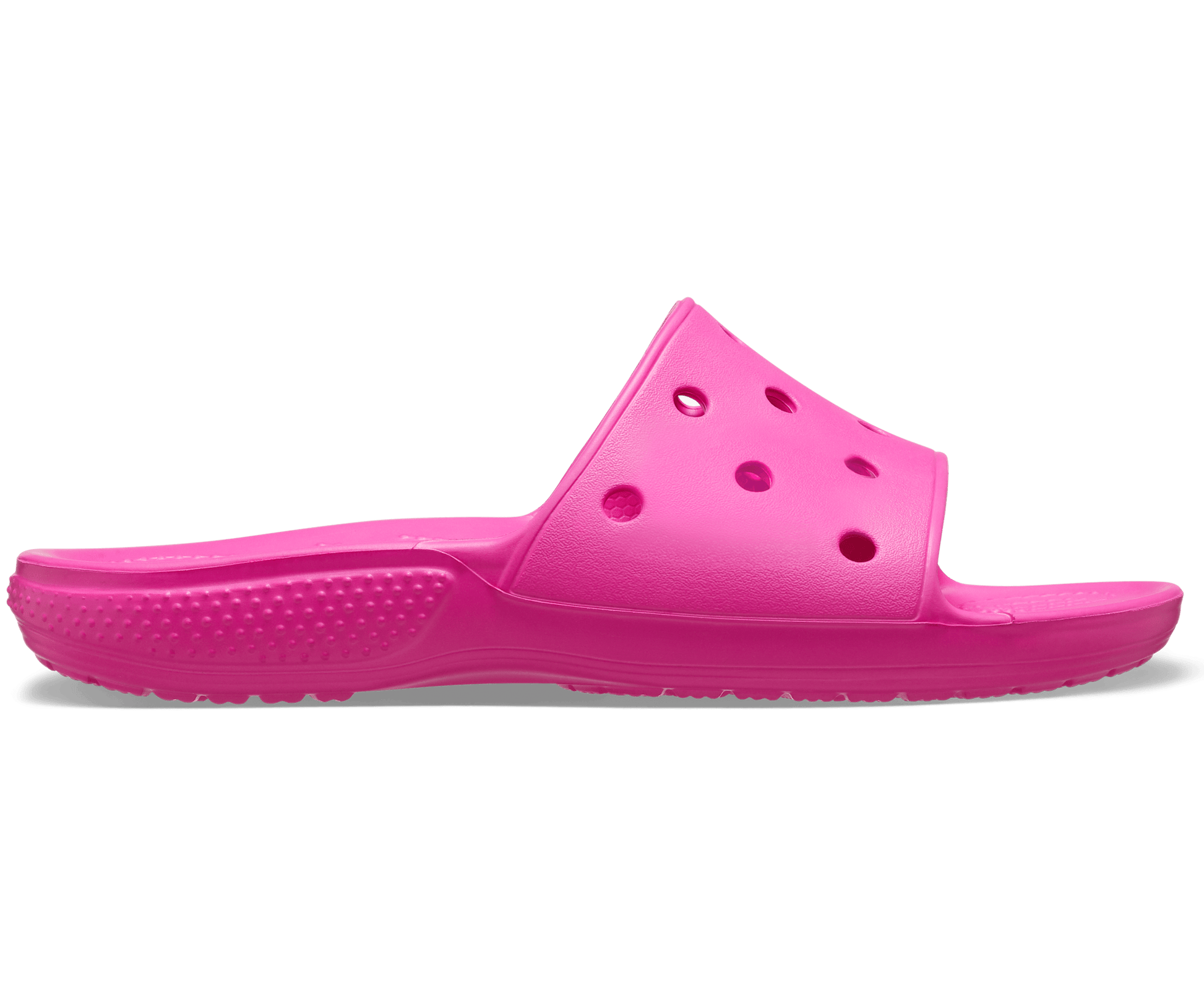 The ever-comfortable Classic II Slide gets the customization upgrade fans have been asking for in the Classic Crocs Slide: holes for Jibbitz™ charms! Each slide has room for 13 charms so you can load up your sandals with tons of personality. Original Croslite™ foam cushion will keep you comfortably supported from the beach to backyard gatherings and beyond. Choose your color and slide into a new favorite!