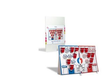 Take your beer pong skills to the next level! This fun chandelier target stacks cups at different heights for an exciting variation on the traditional game. Try to improve your aim and throw the pong ball into cups. Make your opponents drink! Challenge.