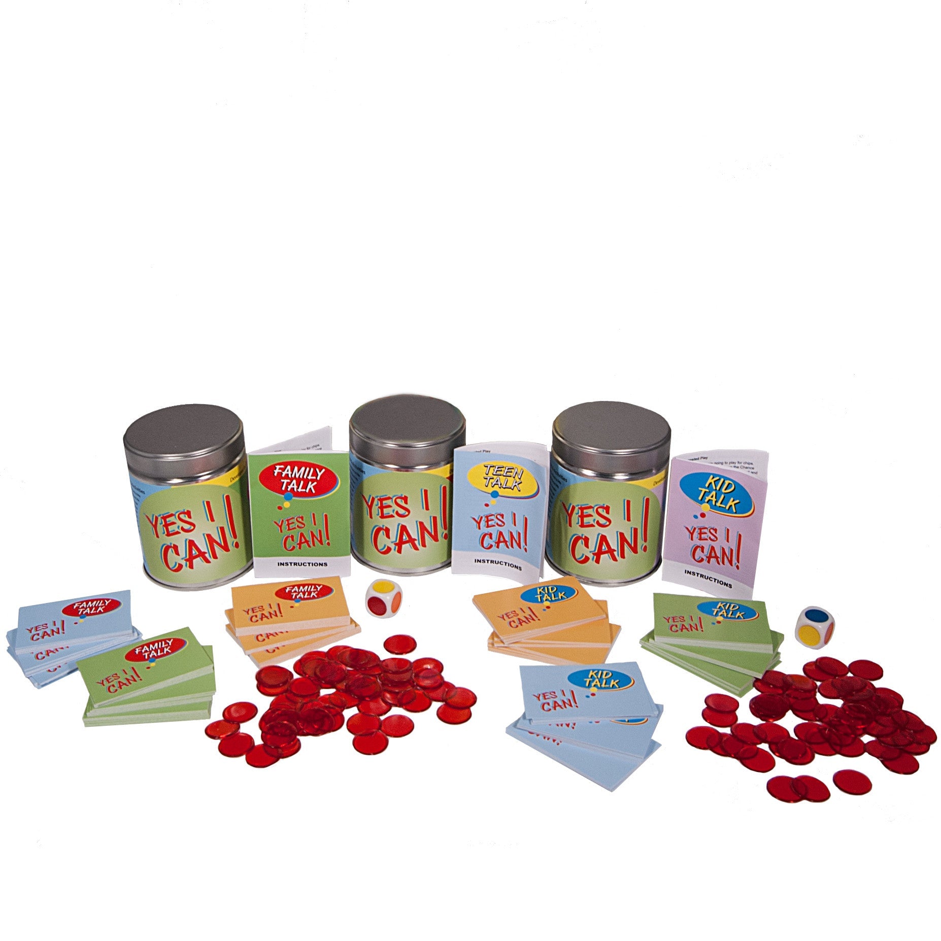 Family Talk: Everyone enjoys connecting with other people. However, many of us have difficulty initiating and sustaining conversations. Sometimes we don't know what to talk about, or are not sure what to say about a topic were discussing. Yes I Can Family Talk is a fun way to have a conversation and to get to know the other participants. It is suitable for families, classrooms, counselors, and therapists. The cards can be used as a competitive game where each player attempts to accumulate the most chips, or non-competitively and participants respond to the cards without earning chips. For ages 6 to Adult, 2 to 8 players.